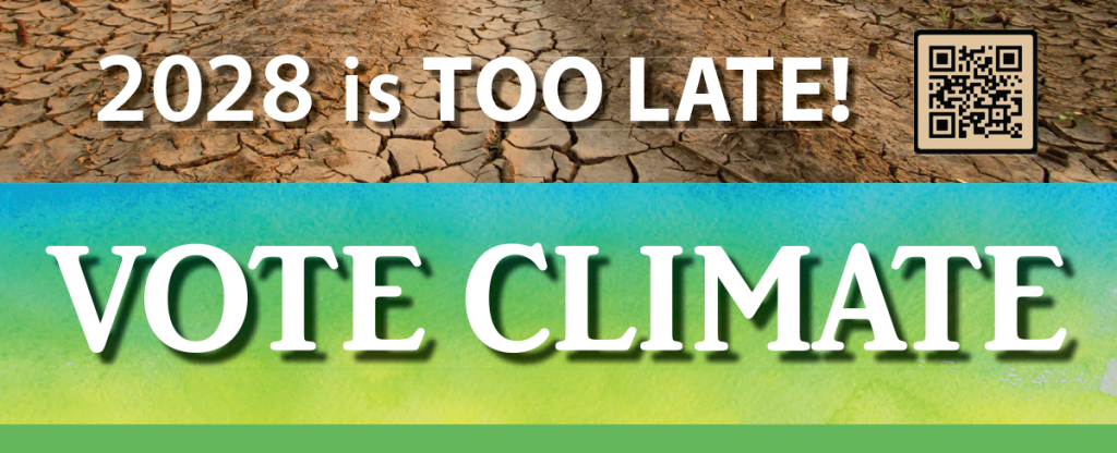 Our free VOTE CLIMATE stickers (originally developed for the 2024 presidential campaign) are also available for use in your local climate organizing efforts.